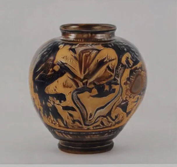 [The antiques road show professional reaches out and rests his palm on the ceramic outer layer of the item. He holds it there for a moment. With his other hand, he puts a finger over the mouth of the audience member.]